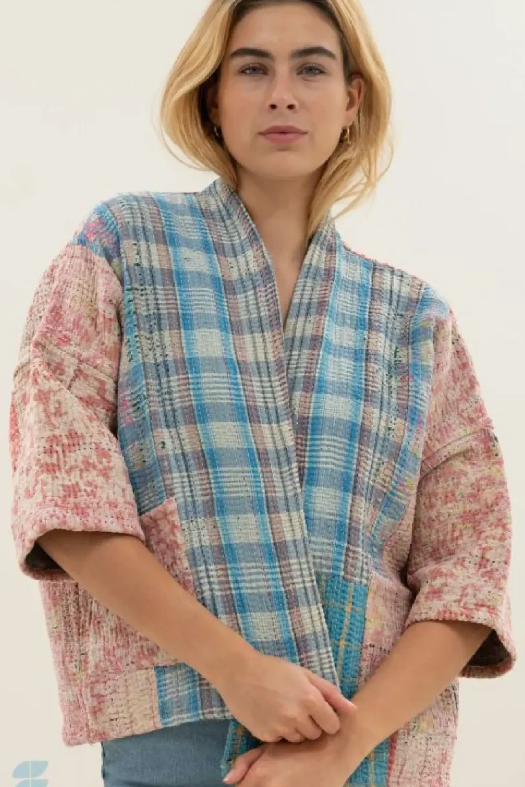 Deze collectie hebben we weer prachtige sustainable antic jackets toegevoegd, gemaakt van oude katoenen sari’s. Na het gebruik van de sari’s zijn er dekens van gemaakt. Van deze dekens hebben wij de antic jackets gemaakt. Elke antic jacket is uniek en heeft dus een andere print. De antic jackets zijn geupcycled en daarom sustainable. De jacket valt tot aan de heup en heeft driekwart mouwen en een laag ingezette schoudernaden. Het jasje is reversible en dus aan beide kanten draagbaar (zie afbeelding). Om deze aan beide kant te kunnen dragen dient alleen het by-bar necklabel eruit gehaald te worden. Dit is makkelijk te verwijderen met een torn mesje. Jackets, gemaakt van oude, katoenen sari’s gedragen door Indiase vrouwen. Na het dragen worden deze sari’s aan elkaar gestikt tot een stevig kleed wat de basis vormt van onze prachtige antic jackets. Alle sari’s hebben een ander design, waardoor elke antic jacket uniek is.