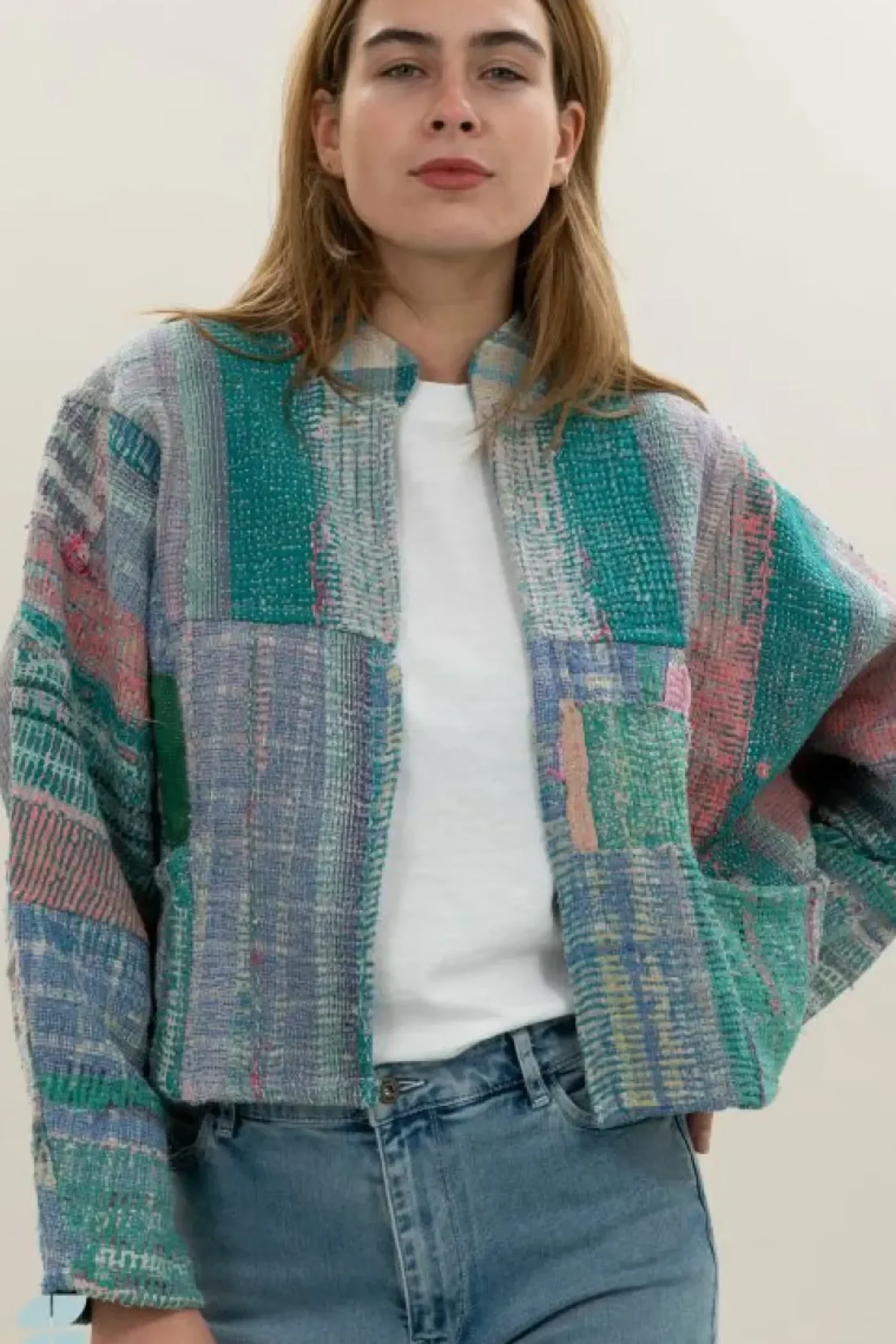 Color up! De blossom antic jacket is gemaakt van 100% upcycled katoen. Het jacket heeft lange mouwen, een losse pasvorm, een hoge halslijn en zijzakken voor een functionele en stijlvolle uitstraling. Deze prachtige sustainable antic jackets zijn gemaakt van oude katoenen sari’s. Na het gebruik van de sari’s zijn er dekens van gemaakt. Van deze dekens hebben wij de antic jackets gemaakt. Elke antic jacket is uniek. De antic jackets zijn geupcycled en daarom sustainable. Het jasje is reversible en dus aan beide kanten draagbaar. Om deze aan beide kant te kunnen dragen dient alleen het by-bar necklabel eruit gehaald te worden. Dit is makkelijk te verwijderen met een torn mesje. Combineer het samen met een benji viscose pant voor een complete look.