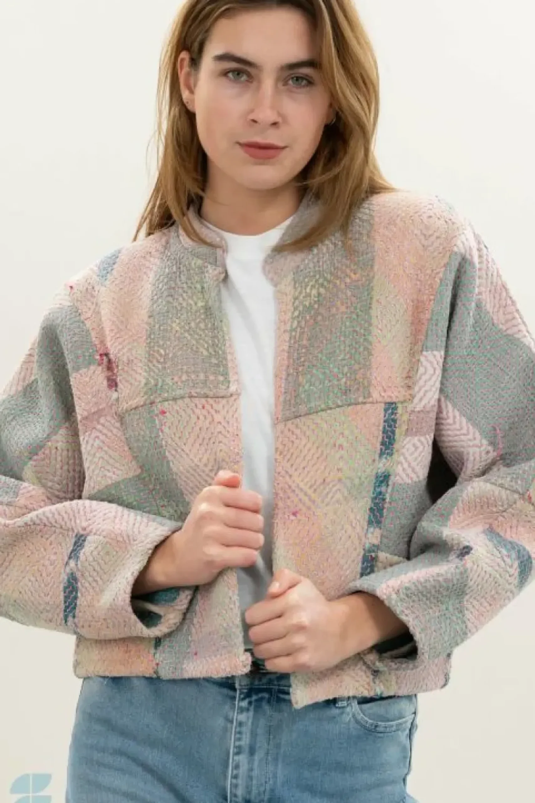 Color up! De blossom antic jacket is gemaakt van 100% upcycled katoen. Het jacket heeft lange mouwen, een losse pasvorm, een hoge halslijn en zijzakken voor een functionele en stijlvolle uitstraling. Deze prachtige sustainable antic jackets zijn gemaakt van oude katoenen sari’s. Na het gebruik van de sari’s zijn er dekens van gemaakt. Van deze dekens hebben wij de antic jackets gemaakt. Elke antic jacket is uniek. De antic jackets zijn geupcycled en daarom sustainable. Het jasje is reversible en dus aan beide kanten draagbaar. Om deze aan beide kant te kunnen dragen dient alleen het by-bar necklabel eruit gehaald te worden. Dit is makkelijk te verwijderen met een torn mesje. Combineer het samen met een benji viscose pant voor een complete look.