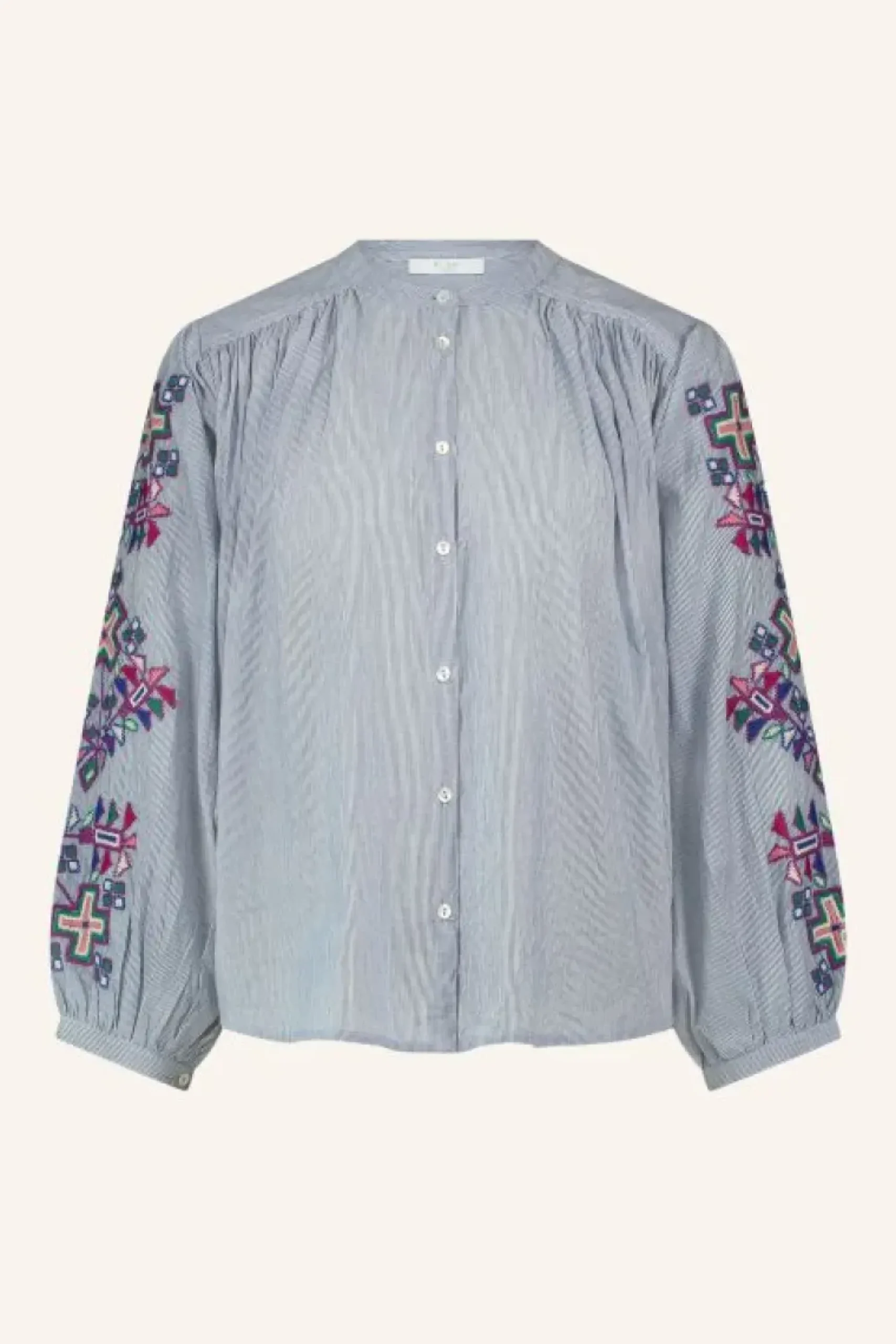 De eye-catching details van de becky pinstripe blouse zorgen voor een perfecte balans tussen een moderne en classy look. De blouse heeft een boxy pasvorm, volumineuze mouwen en een prachtig borduurwerk op de mouwen. Deze blouse is perfect voor elke gelegenheid. De ronde halslijn en de stijlvolle volumineuze mouwen maken het een must-have item.