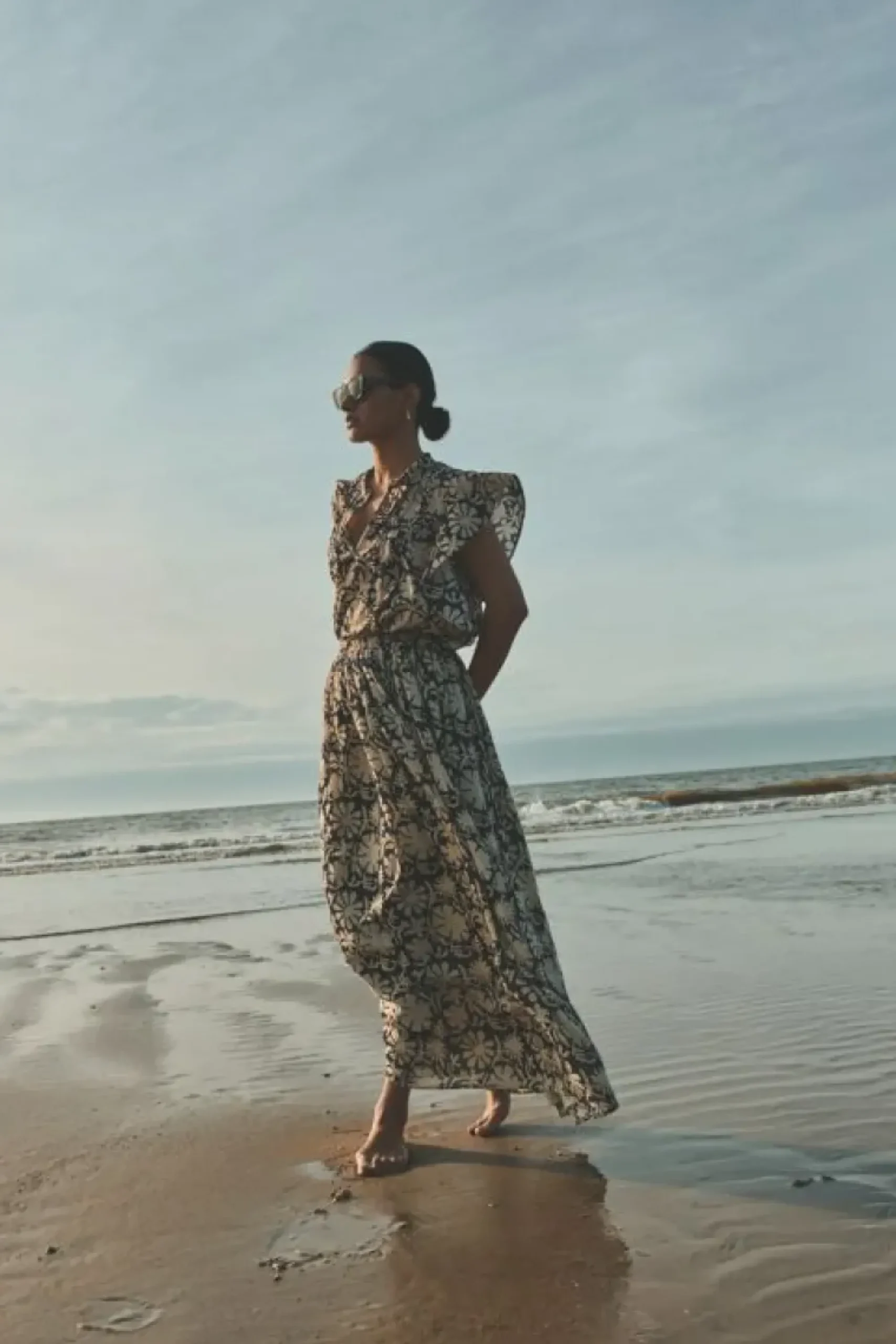 Timeless allure! De danee veda blouse heeft een ronde halslijn die aan de voorzijde met een hook & eye bevestigd is. Het item heeft een rechte pasvorm en een korte mouw. Verder heeft het een all-over print in de kleur jet black en zand. De print heeft Indiase invloeden waardoor het patroon uniek is. De stof is gemaakt van een luchtige katoen. Combineer het samen met een denim pant voor een timeless look.