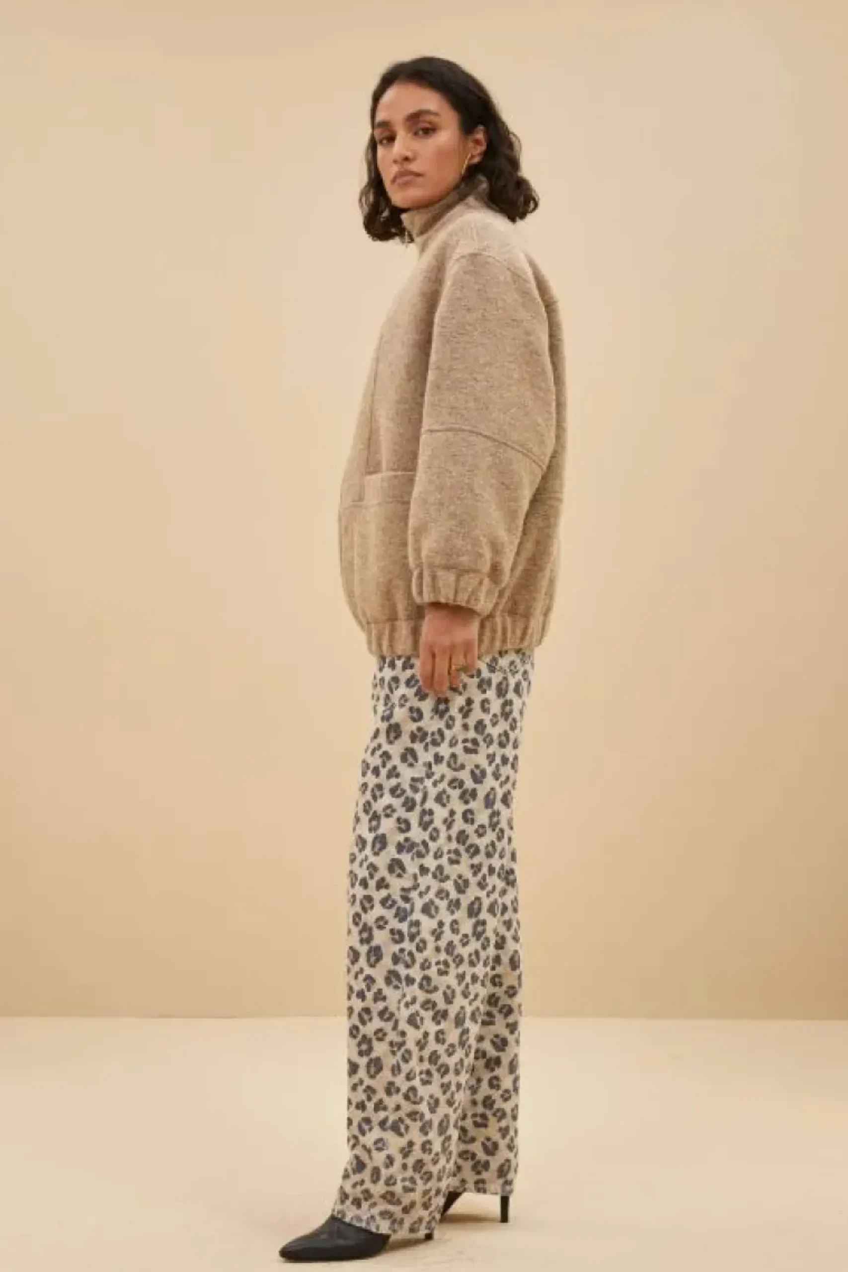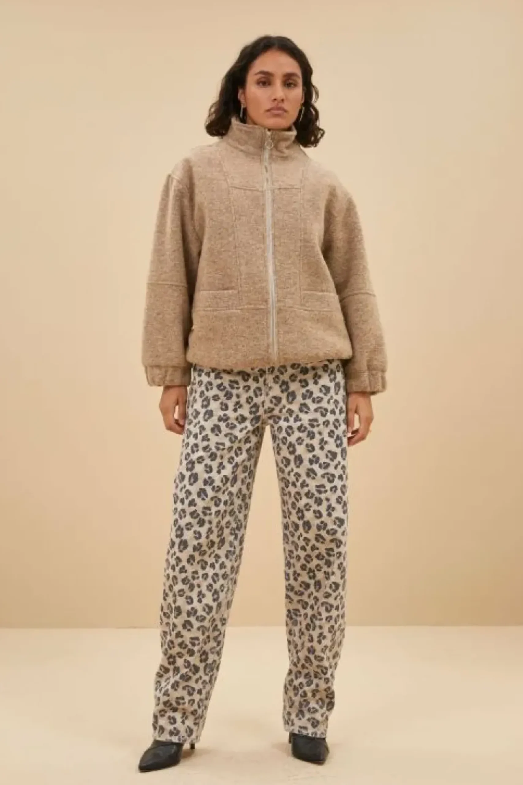 De ingo jacket is gemaakt van gevilt wol voor een trendy & stijlvolle touch. Verder heeft het een hoge opstaande kraag, een opvallende gouden rits en twee steekzakken aan de voorzijde. De los vallende pasvorm en de elastische band aan de onderzijde van het jasje zorgen voor een perfecte fit. Draag het samen met onze klassieke lucky sweater en de lew cheetah pants voor een on-trend look.