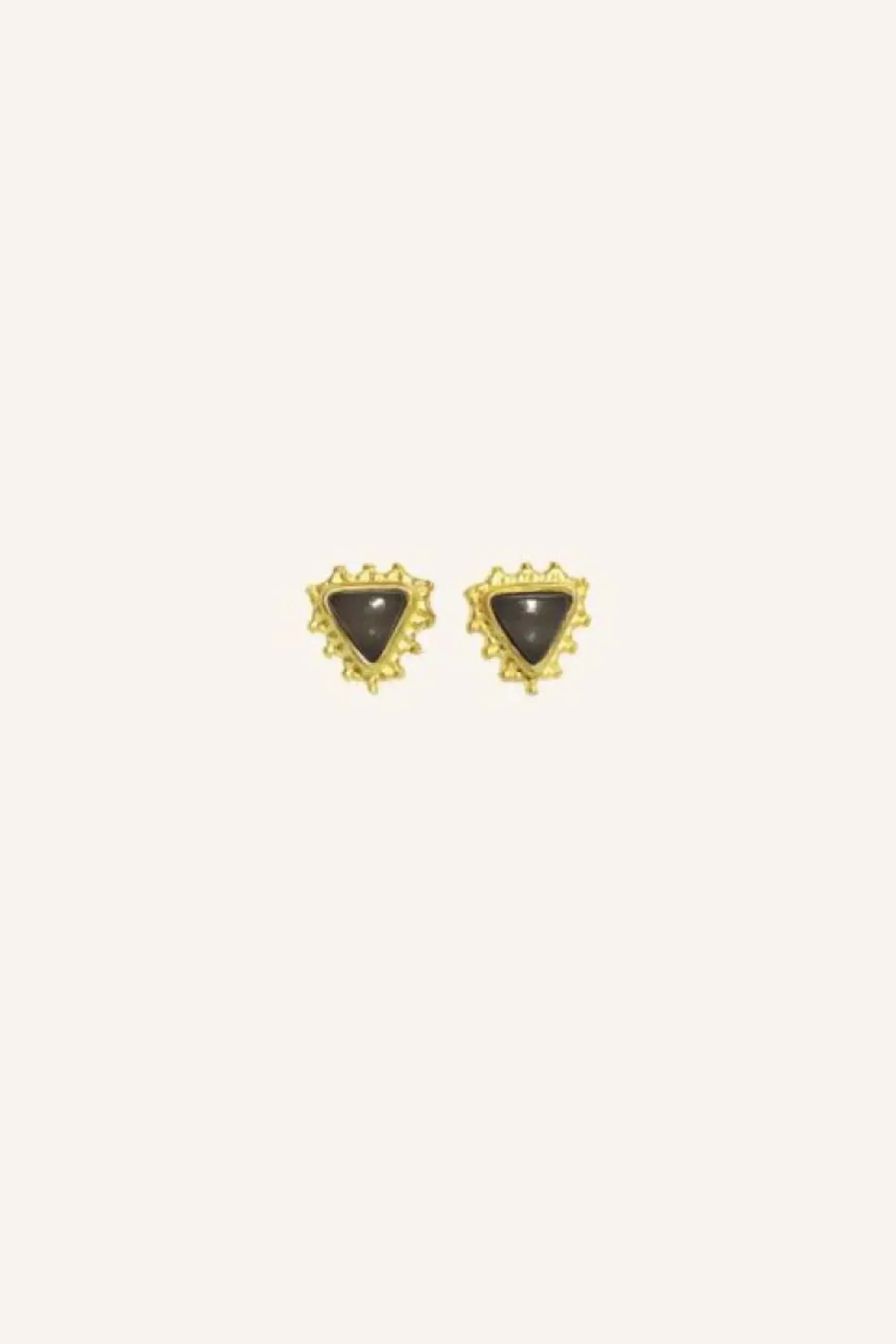 De pd triangle stud earring heeft de vorm van een triangel met een kleine steen van melkglas. Het knopje is gemaakt van koper met verguld goud.De oorbel is 5 mm en wordt verkocht als set.