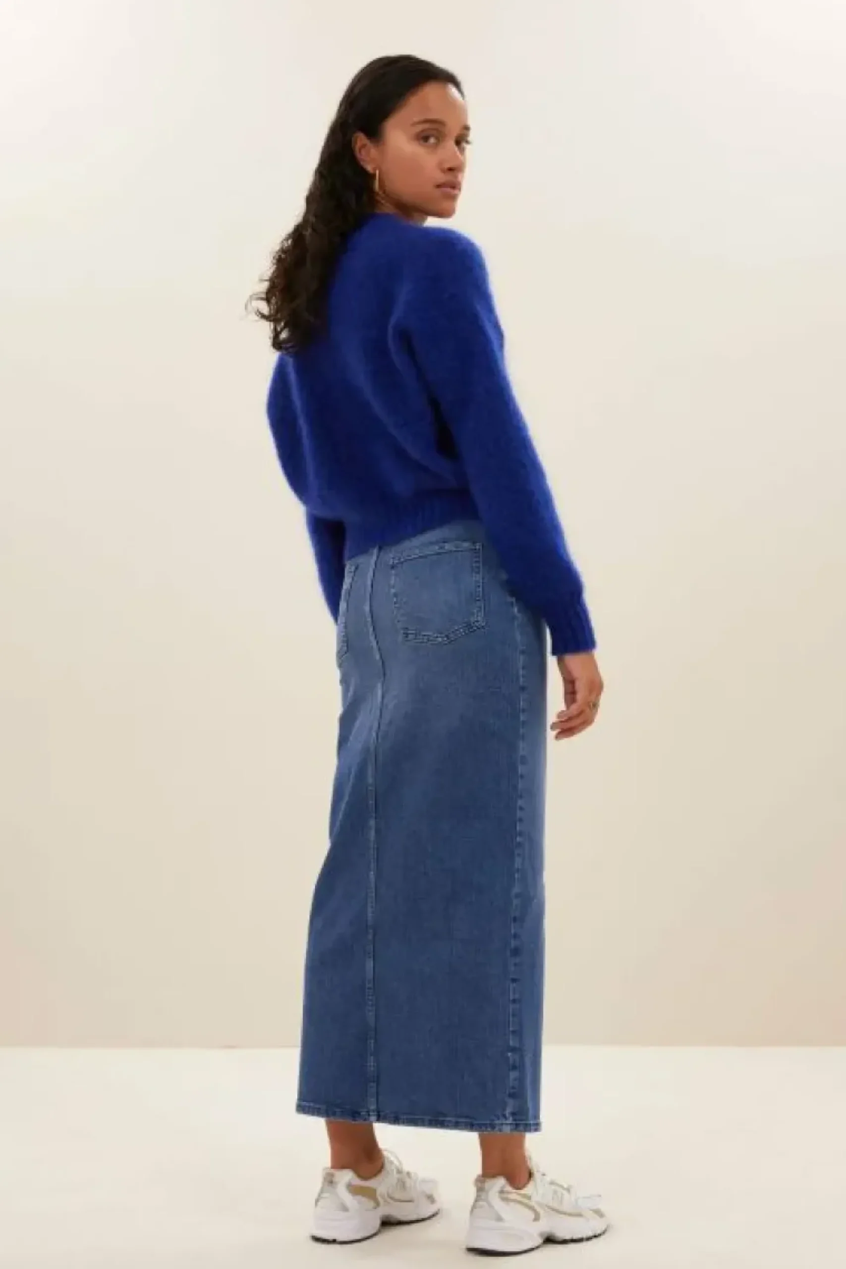 Charme is de tweede naam van de sis denim skirt. De elegante snit zorgt elke dag voor een vrouwelijke touch. Deze comfortabele rok is gemaakt van een mix van katoen en elastaan. Door zijn lengte is de rok een veelzijdige keuze voor diverse gelegenheden. Maak je look compleet met de jade top voor een casual vibe, of fris hem op met een comfortabele knit voor het autumn seizoen.