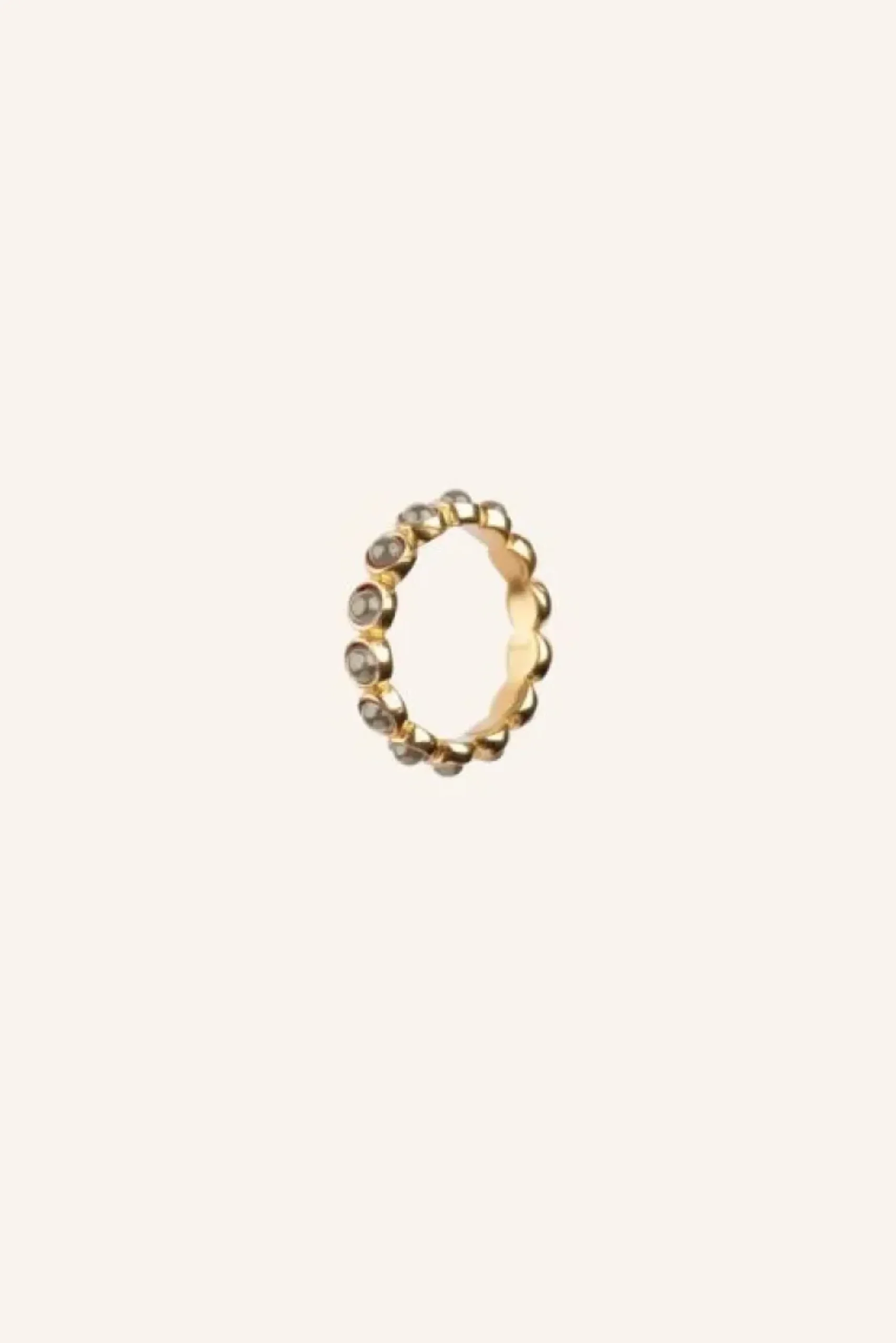 Deze feminine en verfijnde ring geeft een minimalistische en kleurrijke look aan jouw outfit. de ring is gemaakt van verguld goud met melkglas steentjes en is verkrijgbaar in de maten s t/m xl. zie de maattabel voor de afmetingen.