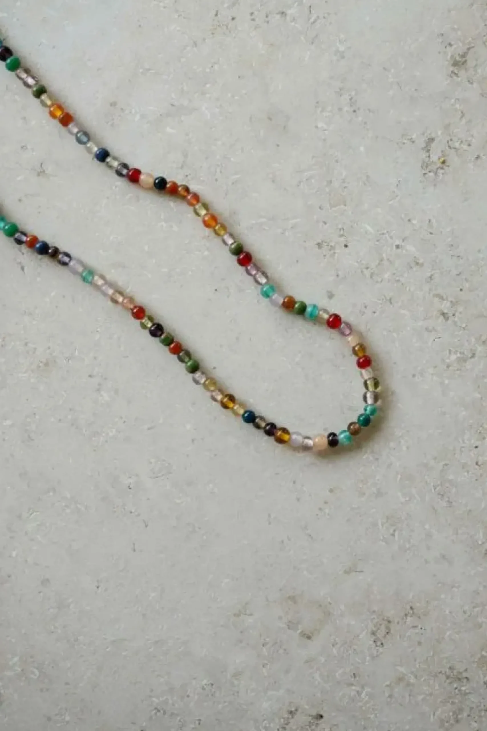 De rose necklace voegt charme toe aan elke outfit. Elke ketting is uniek door de verschillende kleuren kraaltjes. De necklace heeft een totale lengte van 45 cm en is verstelbaar.
