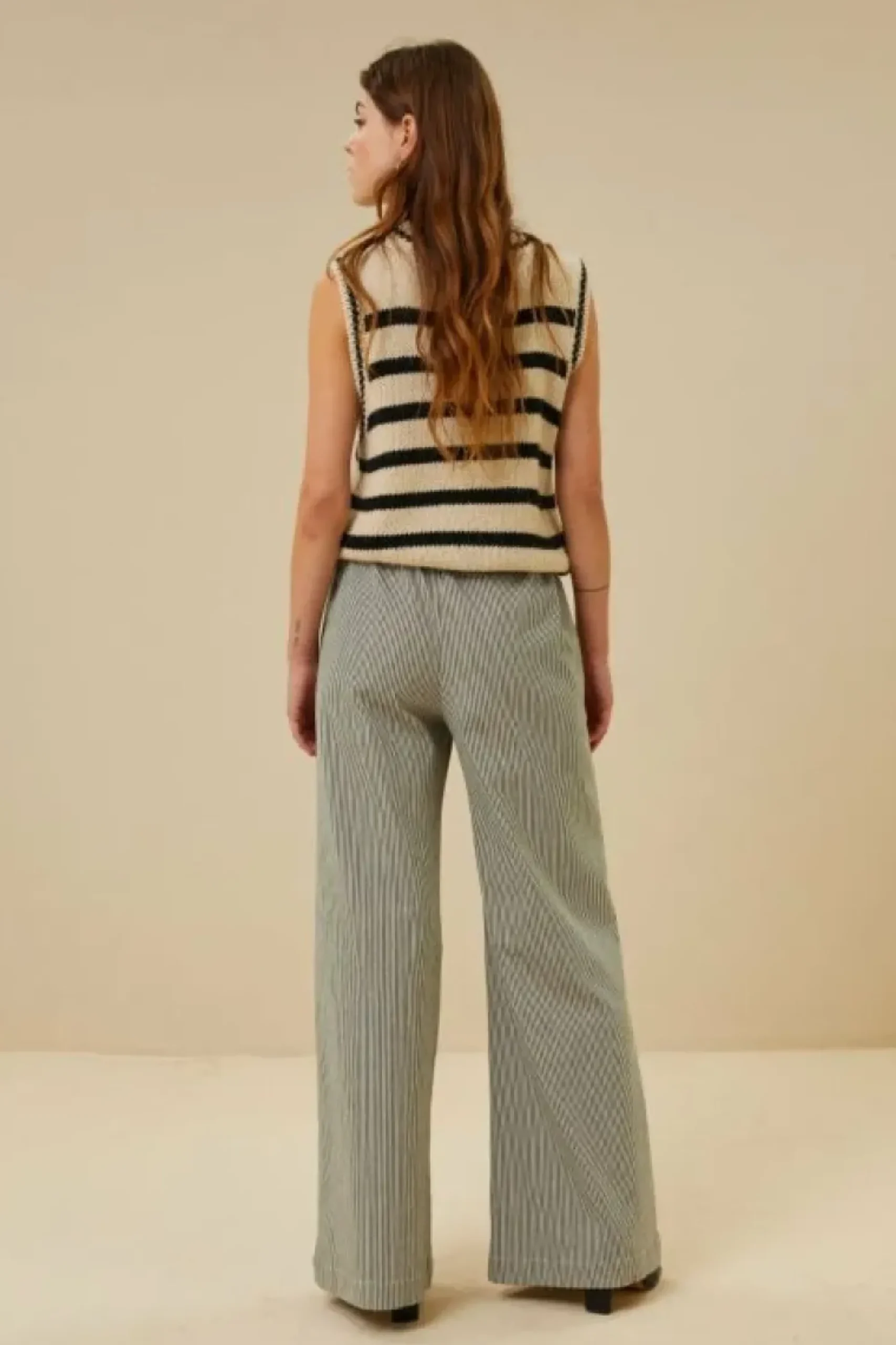 De billy top is gemaakt van een alpaca wol blend. De ronde halslijn brengt de vrouweljkheid, terwijl de strepen en de ribboorden voor een stoere touch zorgen. Combineer met de eli gloss pant voor casual en elegante look.