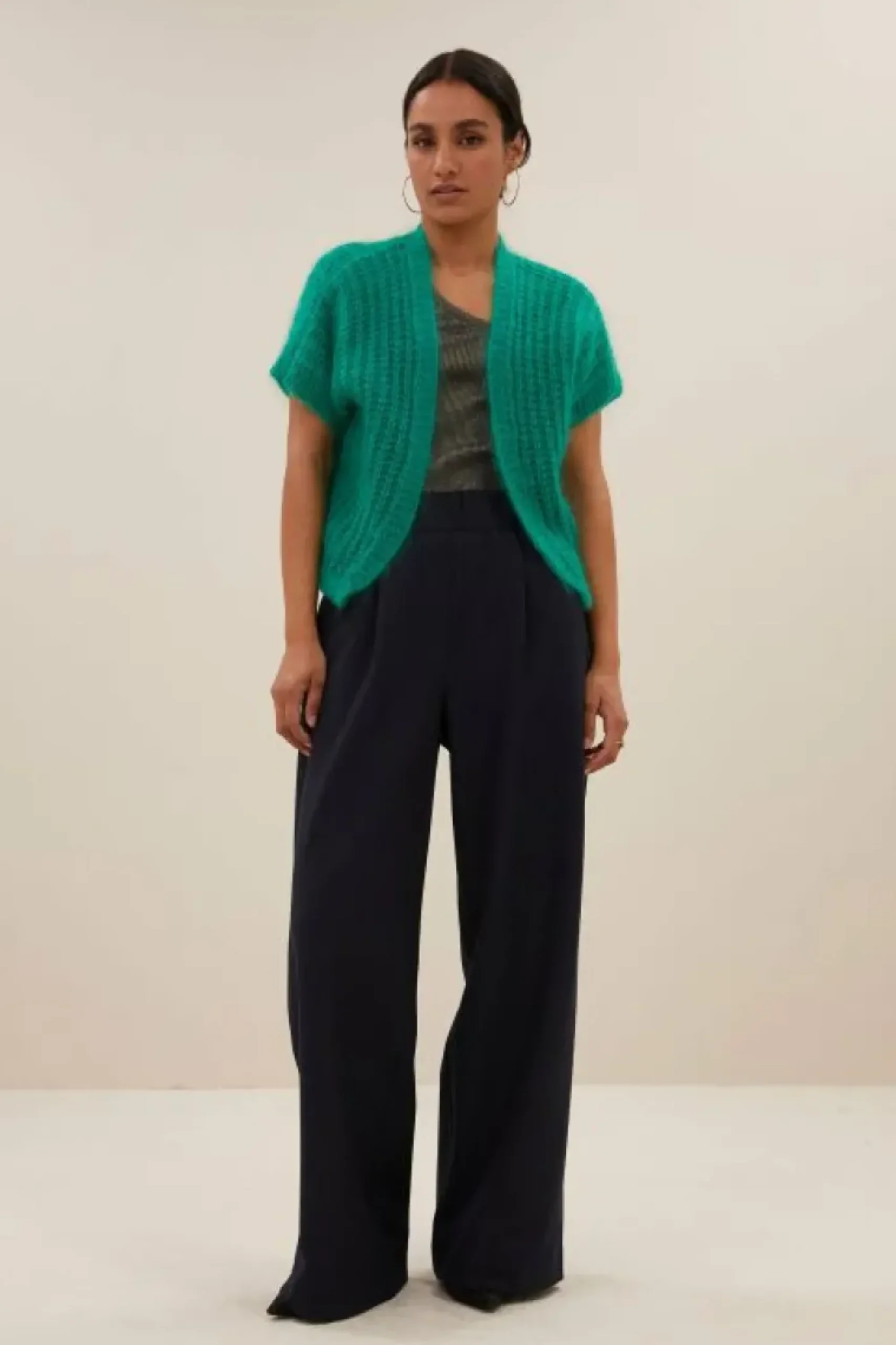 Dit is een combinatie van klassiek en feminine, met een moderne twist. Het breipatroon in combinatie met een korte mouw zorgt ervoor dat je een sophisticated look kunt creëren. Voel je comfortabel met onze all-time favorite anna cardigan, onmisbaar in elke gaderobe.