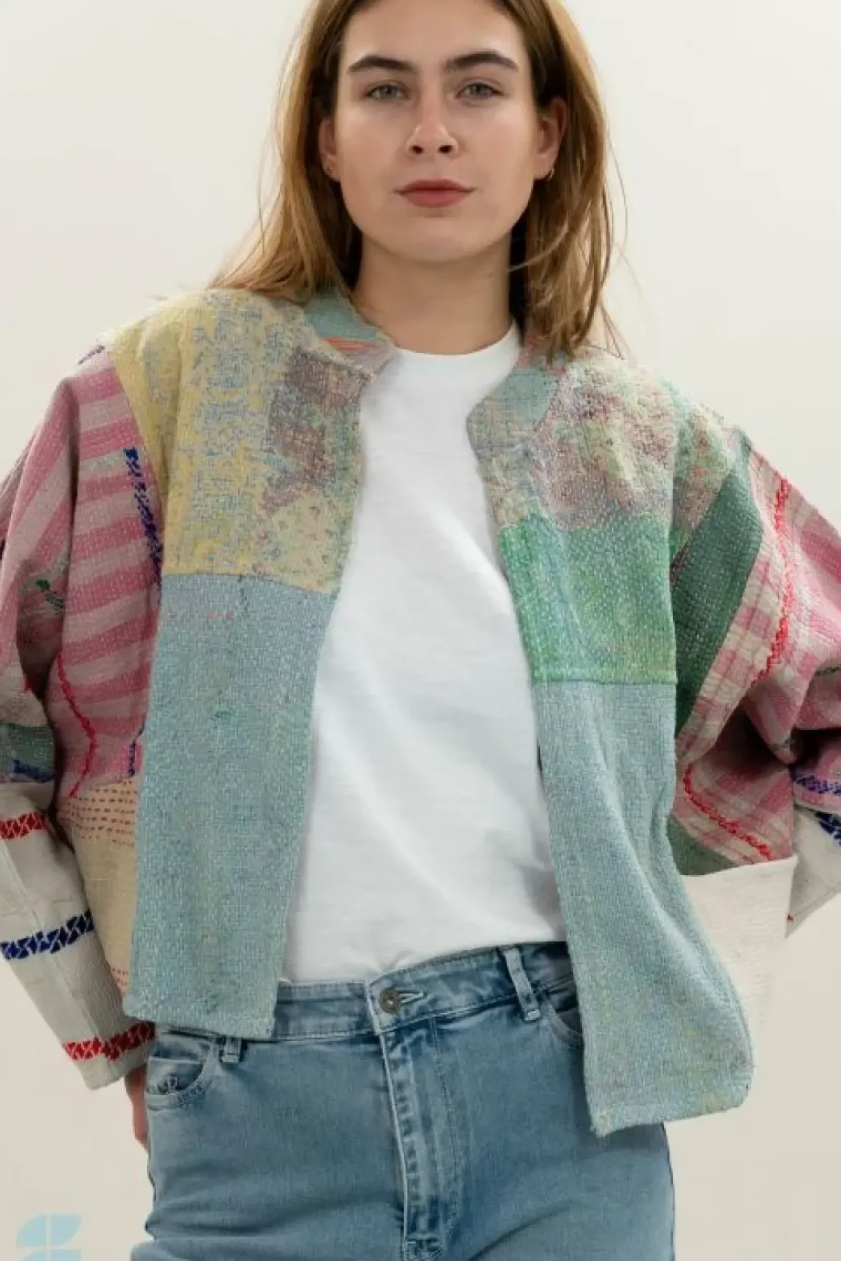 Color up! De blossom antic jacket is gemaakt van 100% upcycled katoen. Het jacket heeft lange mouwen, een losse pasvorm, een hoge halslijn en zijzakken voor een functionele en stijlvolle uitstraling. Deze prachtige sustainable antic jackets zijn gemaakt van oude katoenen sari’s. Na het gebruik van de sari’s zijn er dekens van gemaakt. Van deze dekens hebben wij de antic jackets gemaakt. Elke antic jacket is uniek. De antic jackets zijn geupcycled en daarom sustainable. Het jasje is reversible en dus aan beide kanten draagbaar. Om deze aan beide kant te kunnen dragen dient alleen het by-bar necklabel eruit gehaald te worden. Dit is makkelijk te verwijderen met een torn mesje. Combineer het samen met een benji viscose pant voor een complete look.