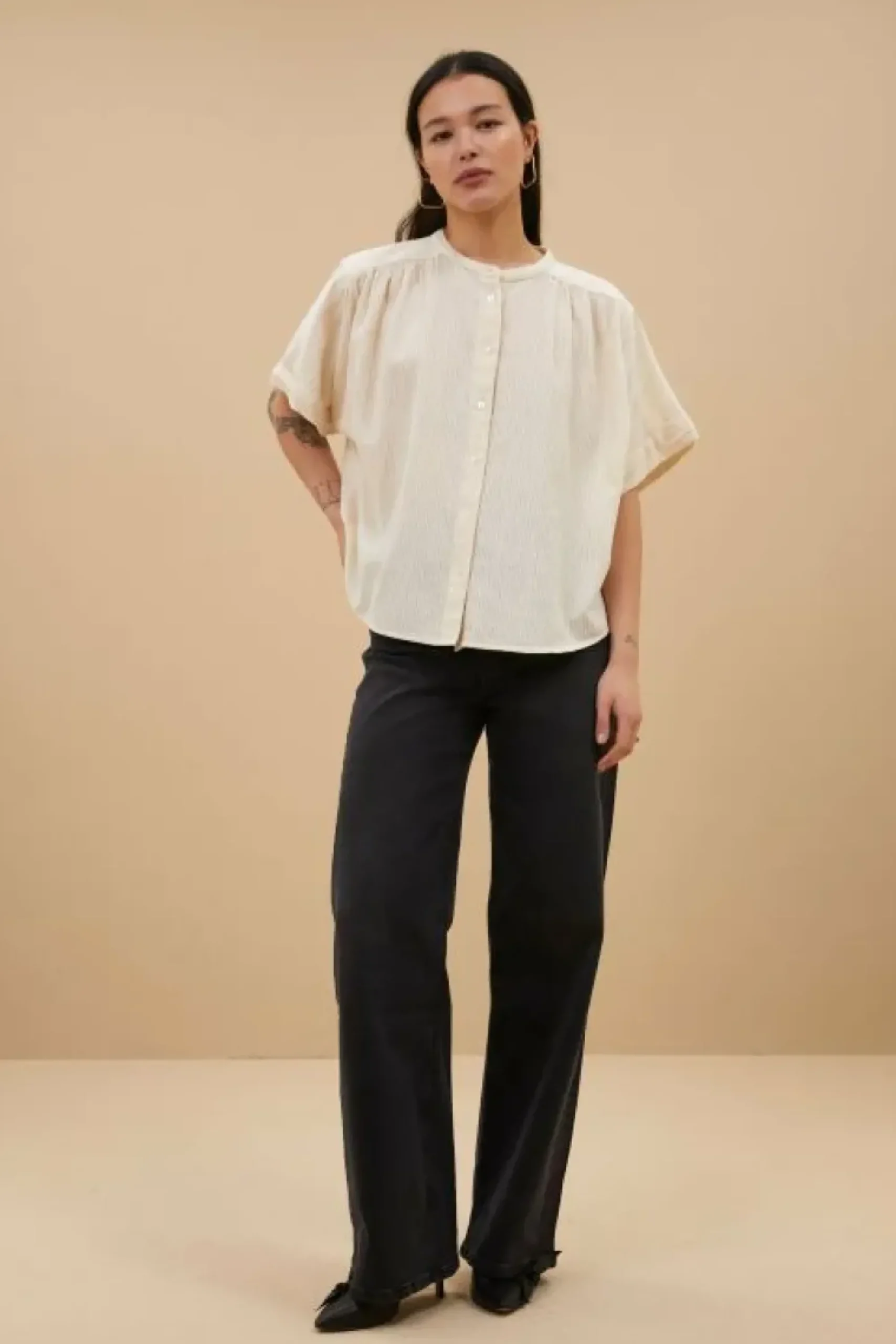 De alex rib blouse heeft een subtiel all-over rib patroon. Het heeft plooitjes bij de schoudernaden en een ronde halslijn met knoopsluiting. De blouse biedt een comfortabele losse pasvorm met een moeiteloos chique uitstraling. Combineer het samen met een stoere denim pant voor een classic look!