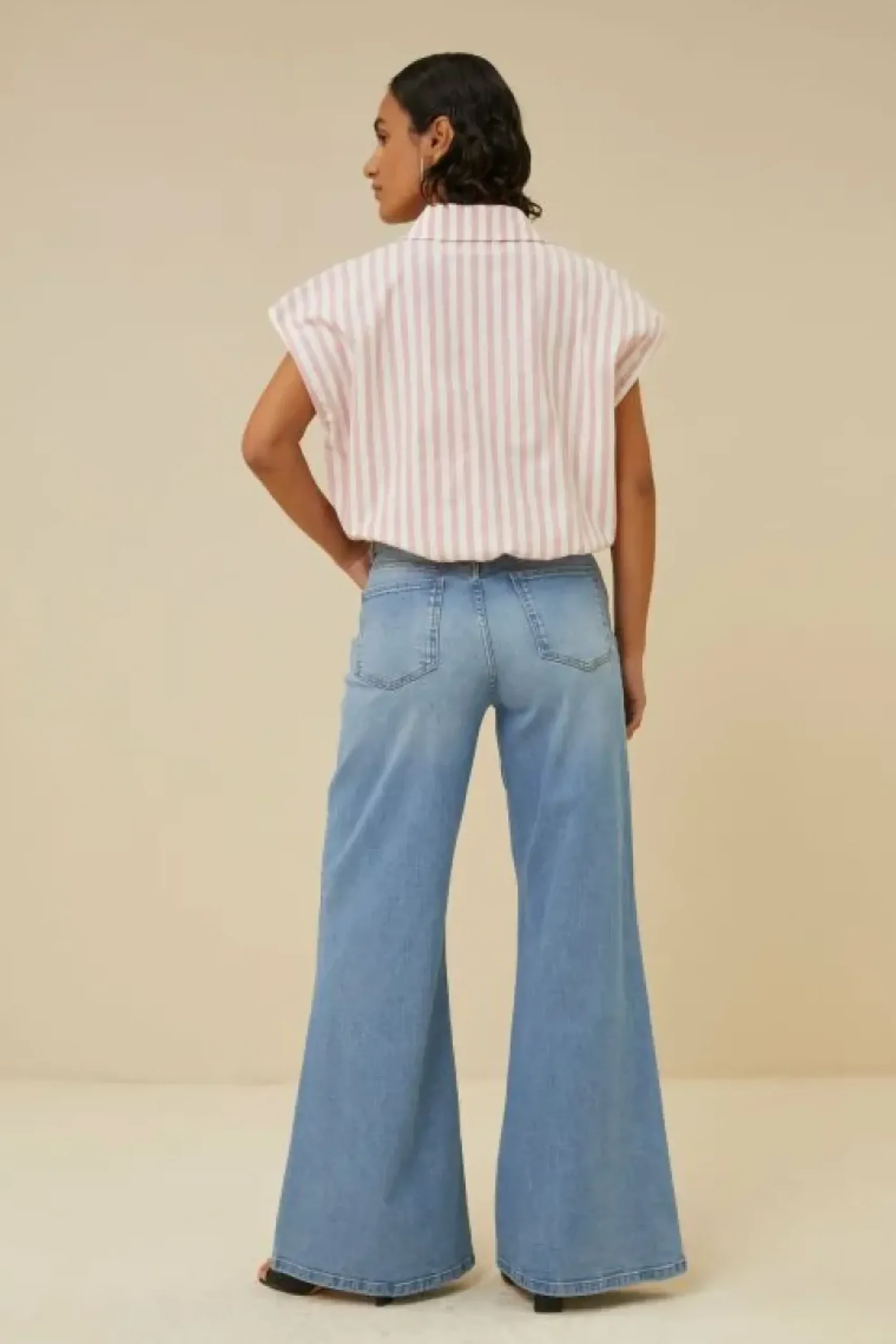 Deze blouse is gemaakt van een linnen en katoenen blend, met een vleugje elastan. De blouse heeft een korte fit, elastieken band aan de onderzijde en ronde halslijn. De blouse is perfect te combineren met een elegante pant of fijne denim.
