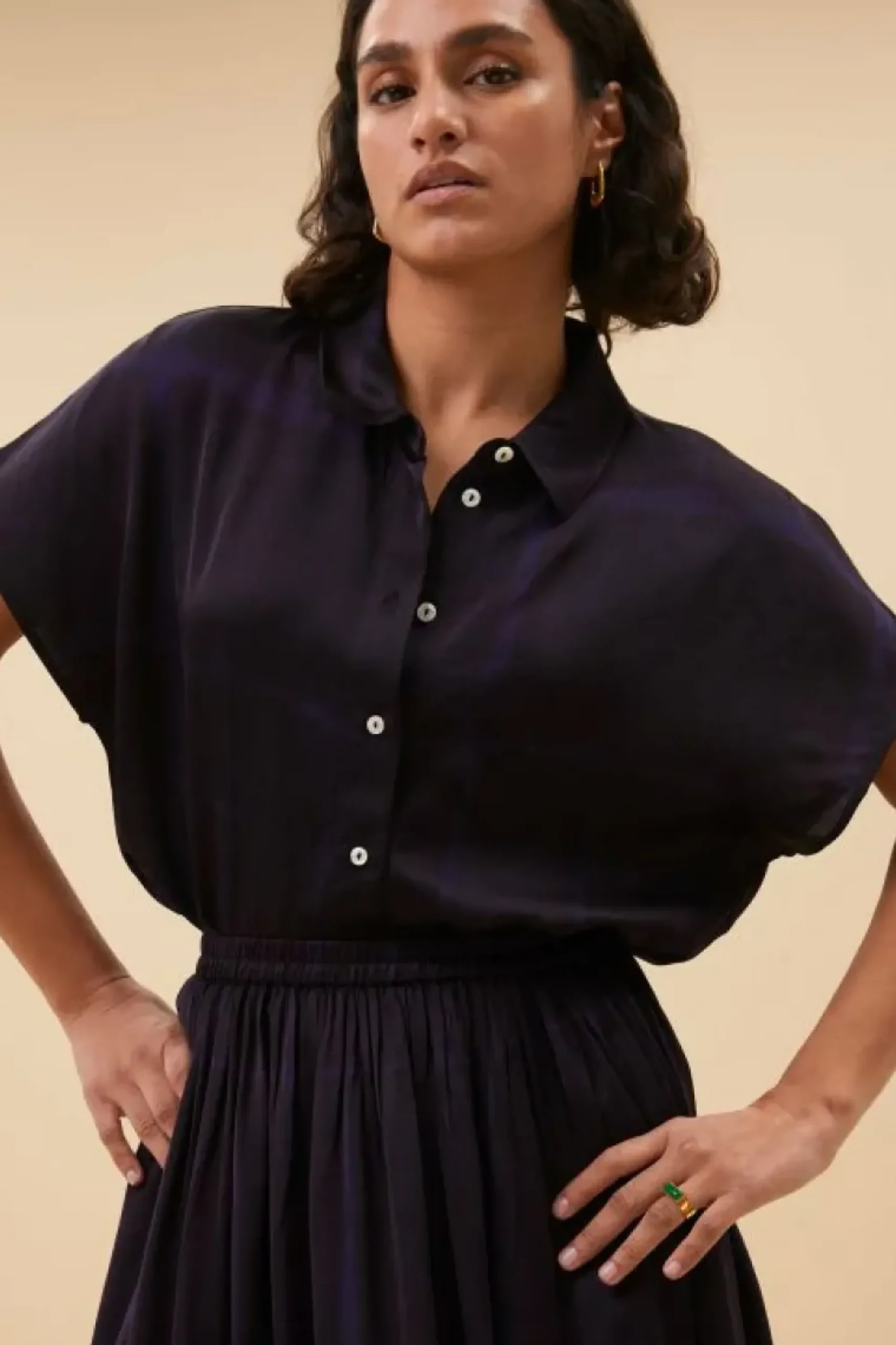 Always on trend! De karly square blouse is gemaakt van ecovero viscose. De blouse heeft een korte mouw, kleine kraag en knoopsluiting aan de voorzijde. Daarbij heeft de blouse een normale pasvorm, perfect voor een casual look. Combineer voor een totale set met de nina square skirt.