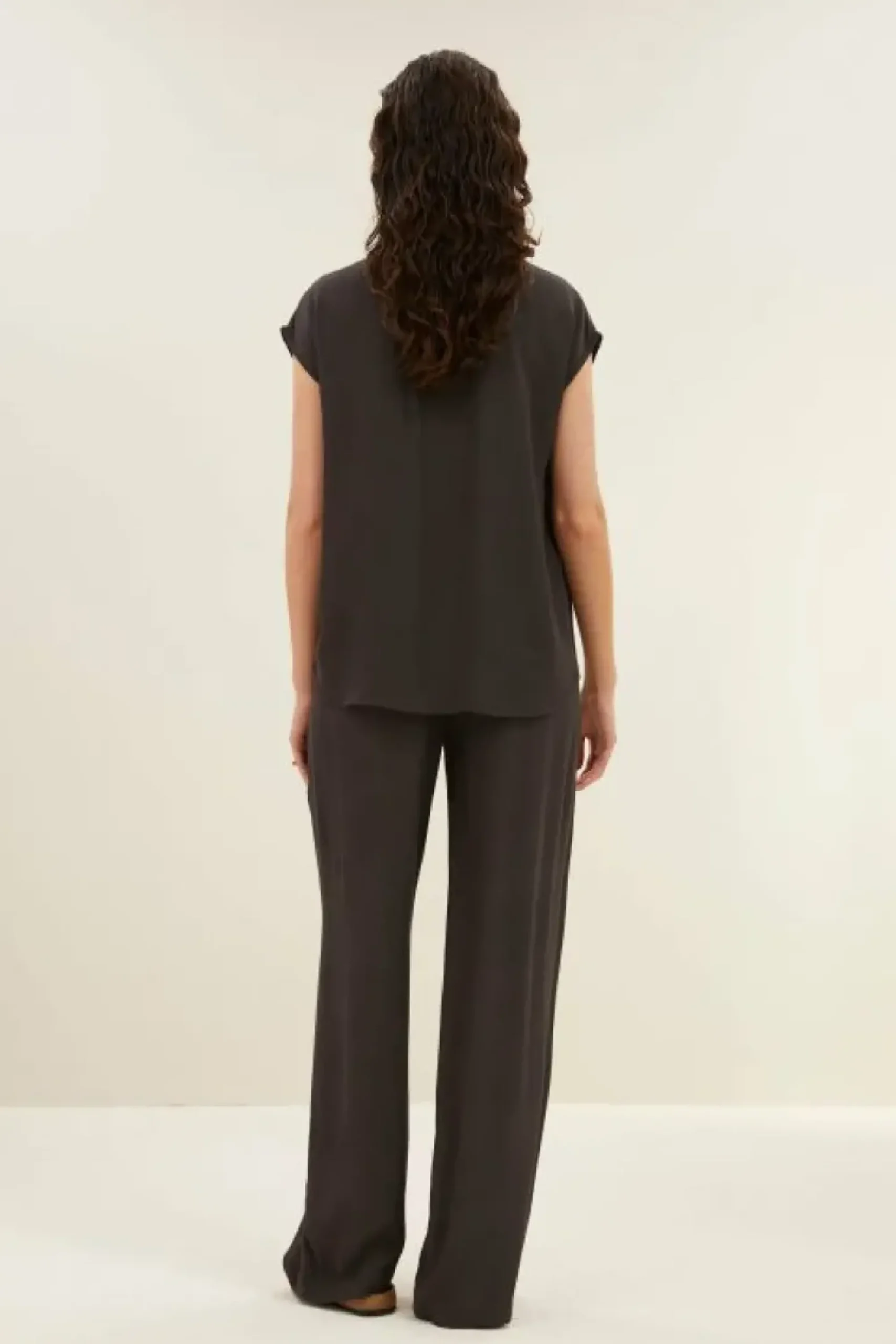 Ontdek de veelzijdigheid van de kiek viscose top in een stijlvolle cafe noir kleur! Deze casual blouse met korte mouwen is perfect voor elke gelegenheid. Gemaakt van ecovero lenzing viscose en heeft een normale pasvorm. De knoopsluiting en kraag geven een elegante touch aan je outfit.