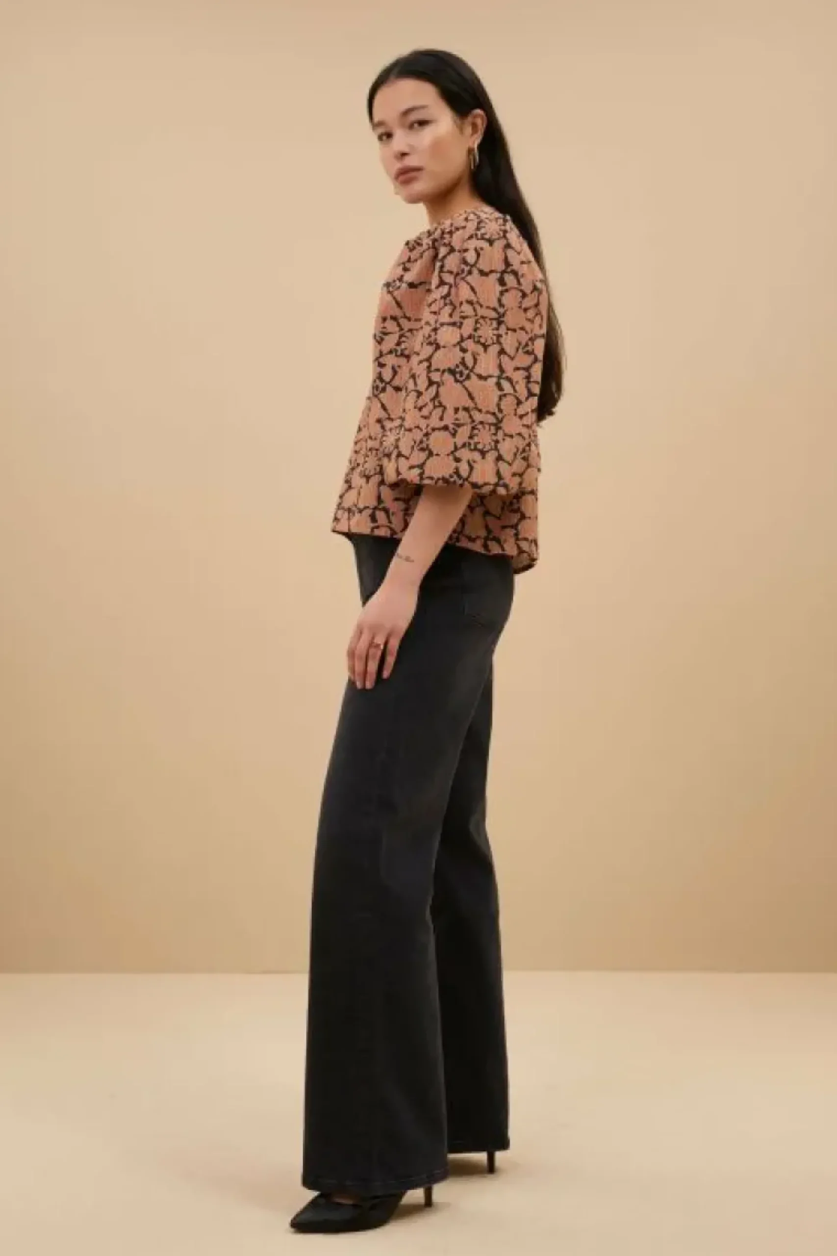 De eyecatcher van de collectie! De zasu anika blouse zorgt voor de perfecte balans tussen een moderne en classy look. De blouse heeft een rits op de rug, een hoge ronde halslijn, eye-catching pofmouwen en een all-over anika print. Met deze blouse ben je perfect gekleed voor elke gelegenheid.