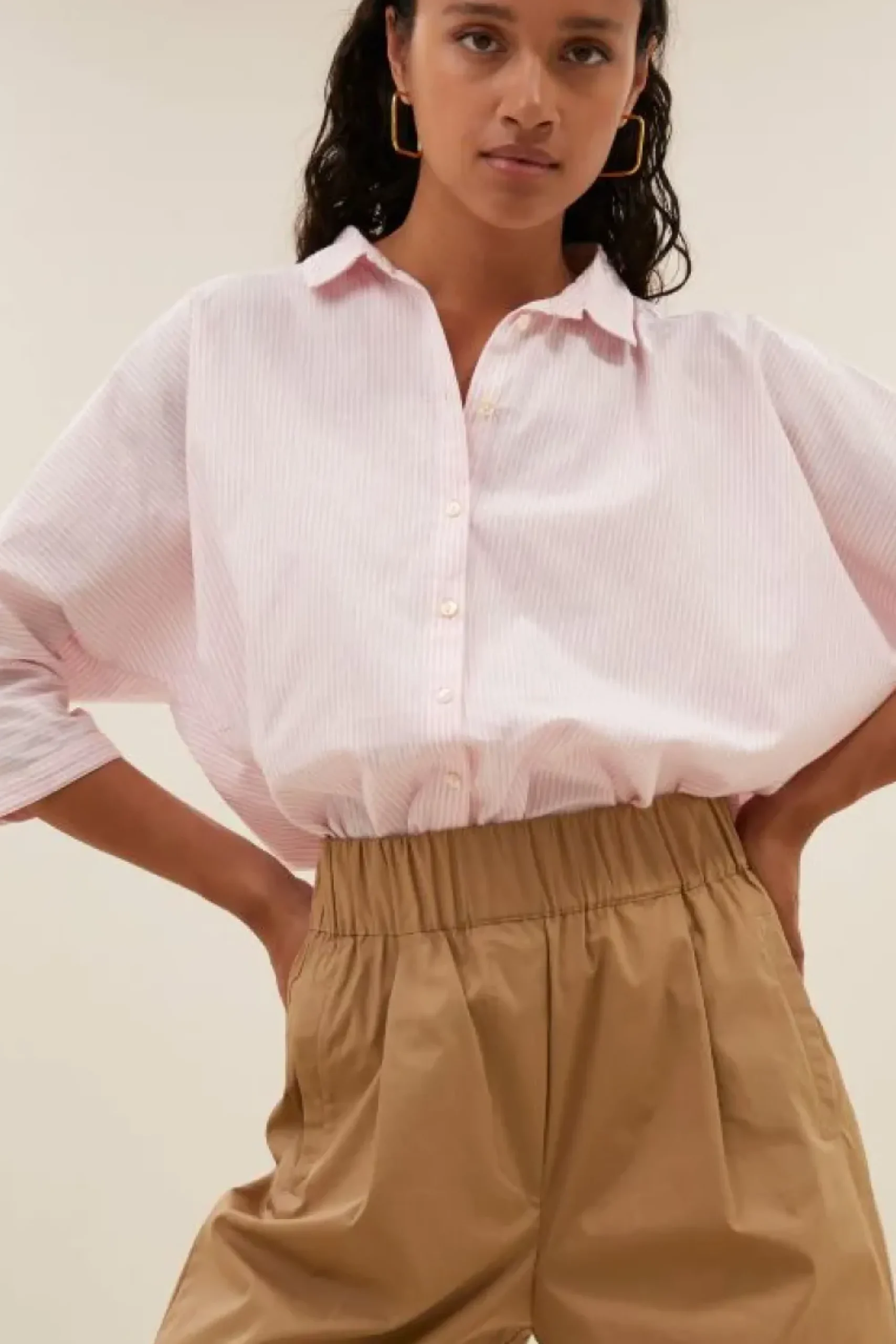 Stijlvol en casual? Dat is de benji poplin pant! De broek heeft een hoge taille met een elastieken band, plooien aan de voorkant, steekzakken en wijde broekspijpen. Gemaakt van een zachte katoen kwaliteit voor ultiem comfort. Combineer de broek samen met de norel pink pinstripe blouse voor een casual look!