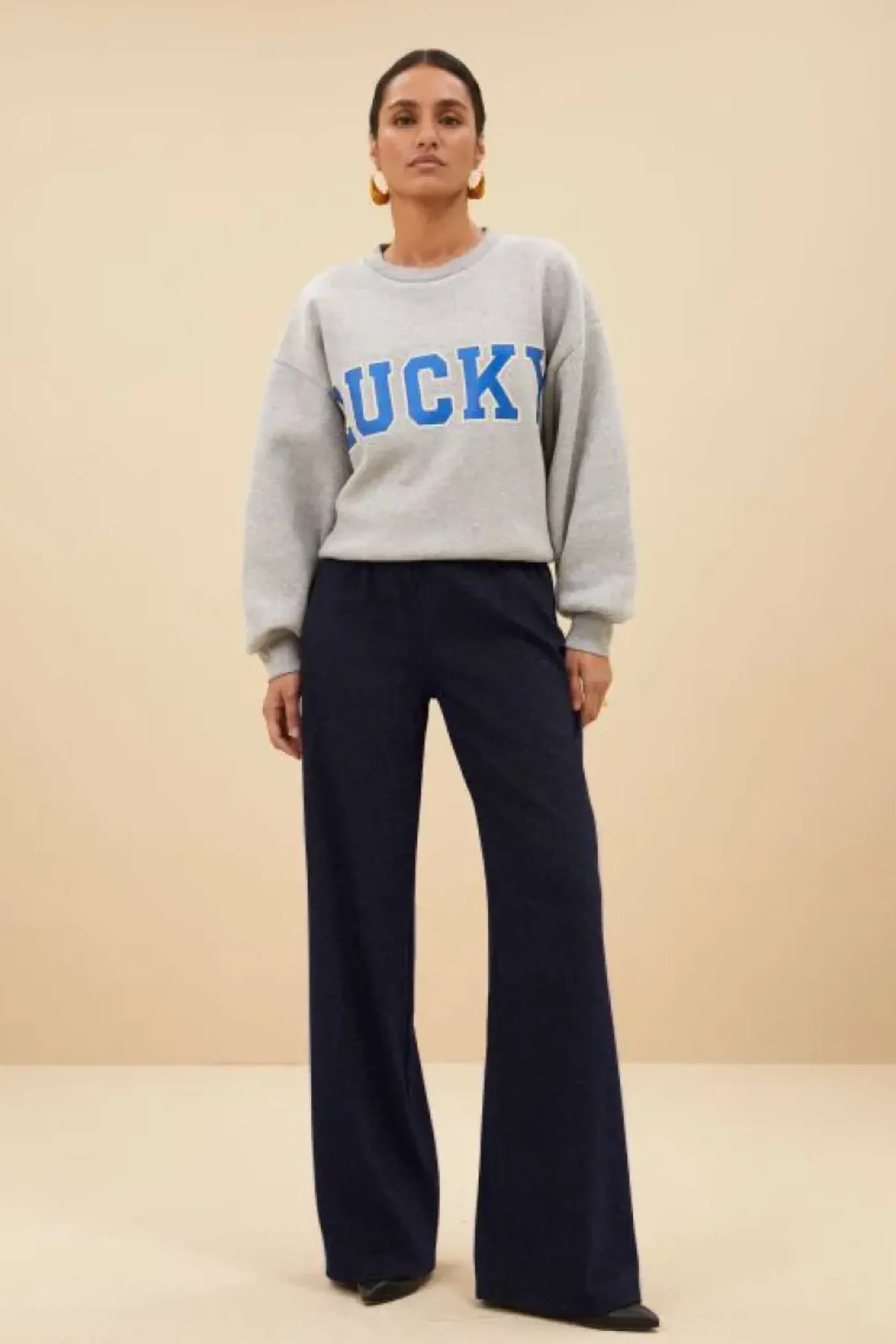 Effortless elegance in every pair! De lissa sparkle pants is gemaakt voor een elegante en sparkling look. De broek heeft een hoge taille en een los vallende pasvorm. Verder heeft de broek een elastische tailleband en als finishing touch is deze broek voorzien van een all-over lurex dessin wat zorgt voor een festive touch. Draag het samen met de bibi lucky sparkle sweater voor een stijlvolle set.