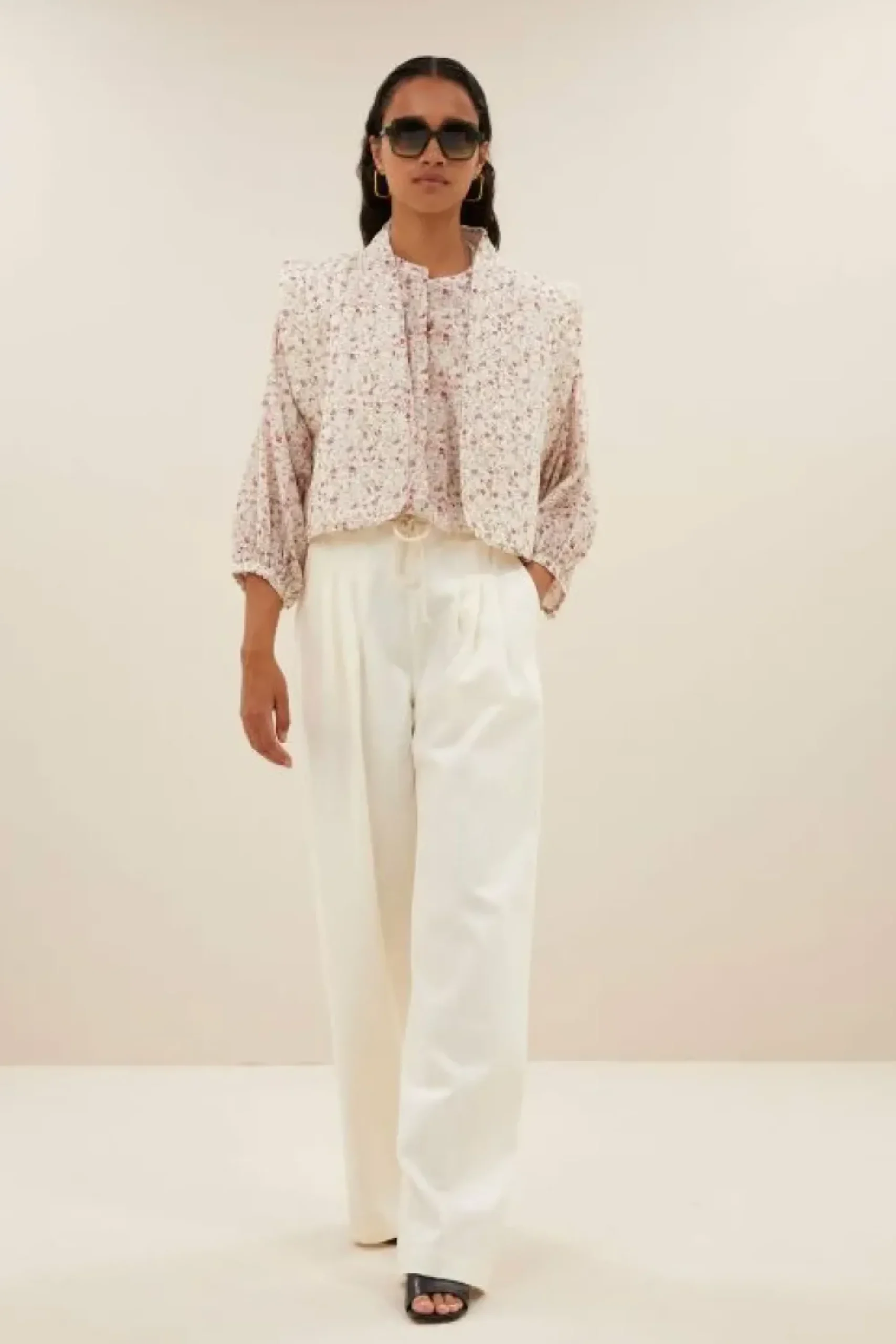 Maak een statement met de isla flower jacket. Deze vrolijke, mouwloze jas is perfect voor elke gelegenheid. De jas heeft een boxy pasvorm, kleine kapmouwen en is gemaakt van een katoen kwaliteit. Draag de jas samen met de becky flower blouse die dezelfde bloemenprint heeft.