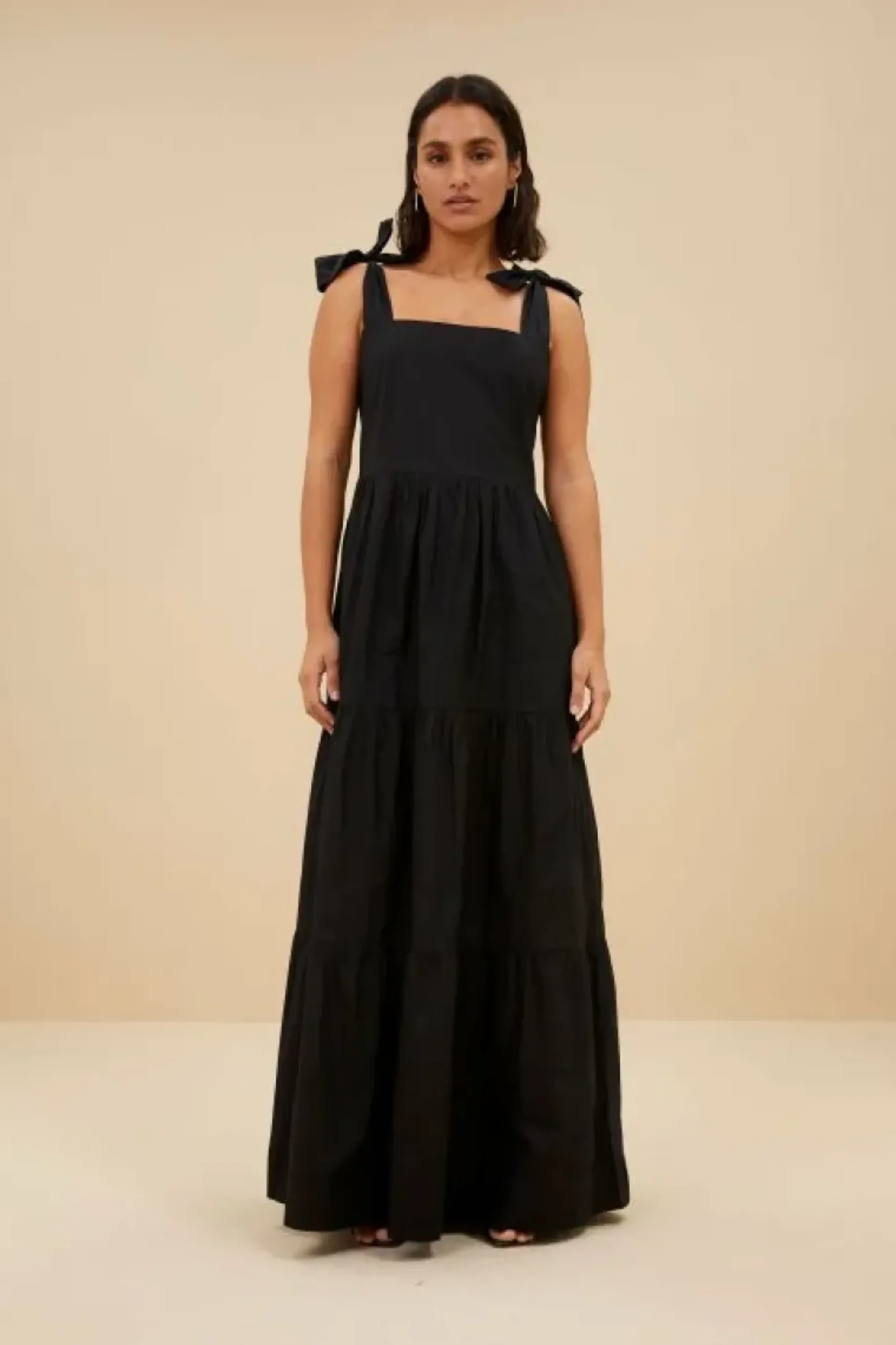 Sunshine & sophistication! De doah dress heeft een maxi lengte, een rechte halslijn, een uitlopend model en een smock detail op de achterzijde. De jurk heeft een black kleur met strikjes op de rug. De schouderbandjes zijn door middel van de strik te verstellen. Niet alleen stijlvol, maar ook praktisch. Verder draagt het comfortabel en is het gemaakt van een biologische katoen kwaliteit. Combineer het samen met jouw favoriete sieraden voor een sophisticated look!