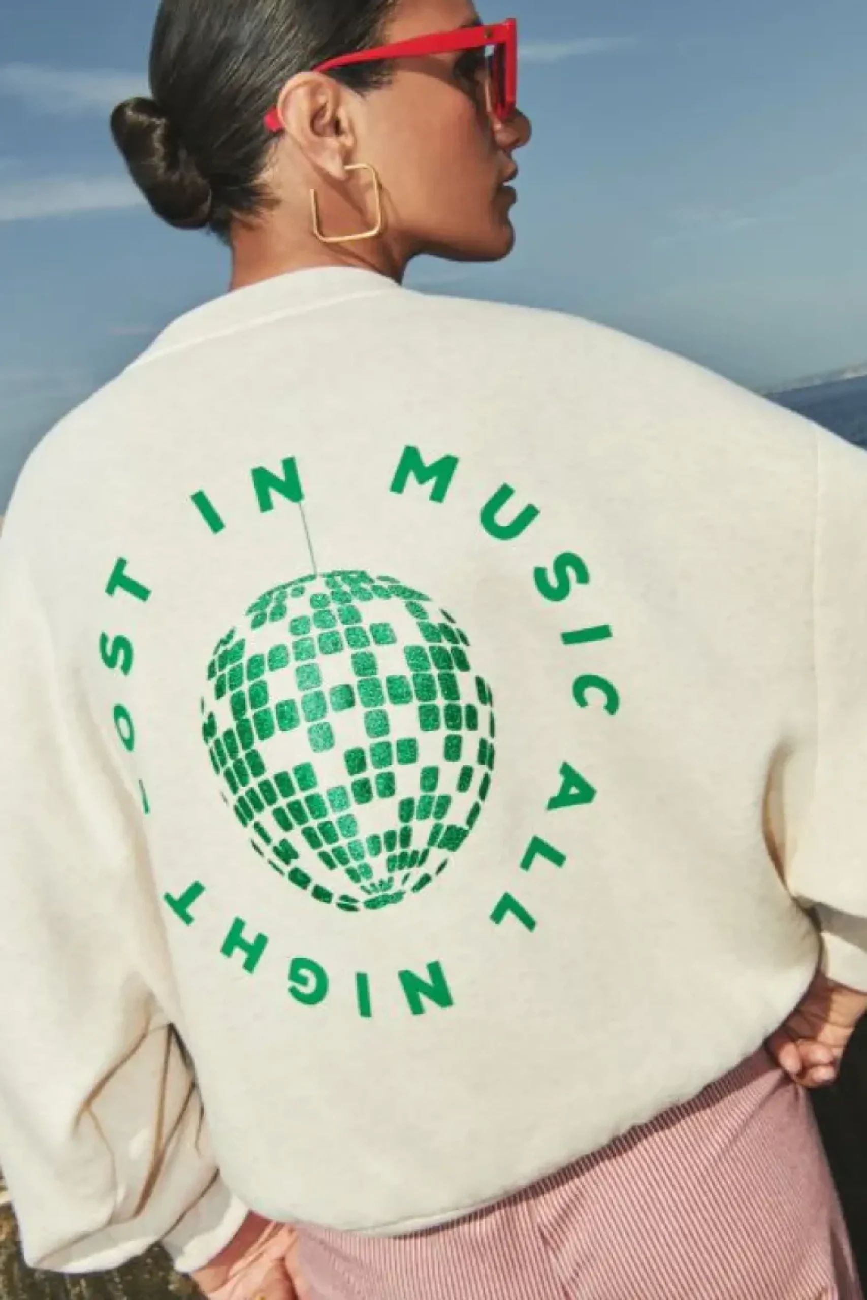 Funky vibes, lost in music all night! De bibi disco sweater, ideaal voor een casual day to night look. De sweater is gemaakt van een zachte kwaliteit polycotton Het item heeft een ronde halslijn en het ‘by-bar brand logo’ op de voorkant. Op de achterkant staat de tekst ‘lost in music all night’. Combineer met de randy green stripe pants voor een feminine look.