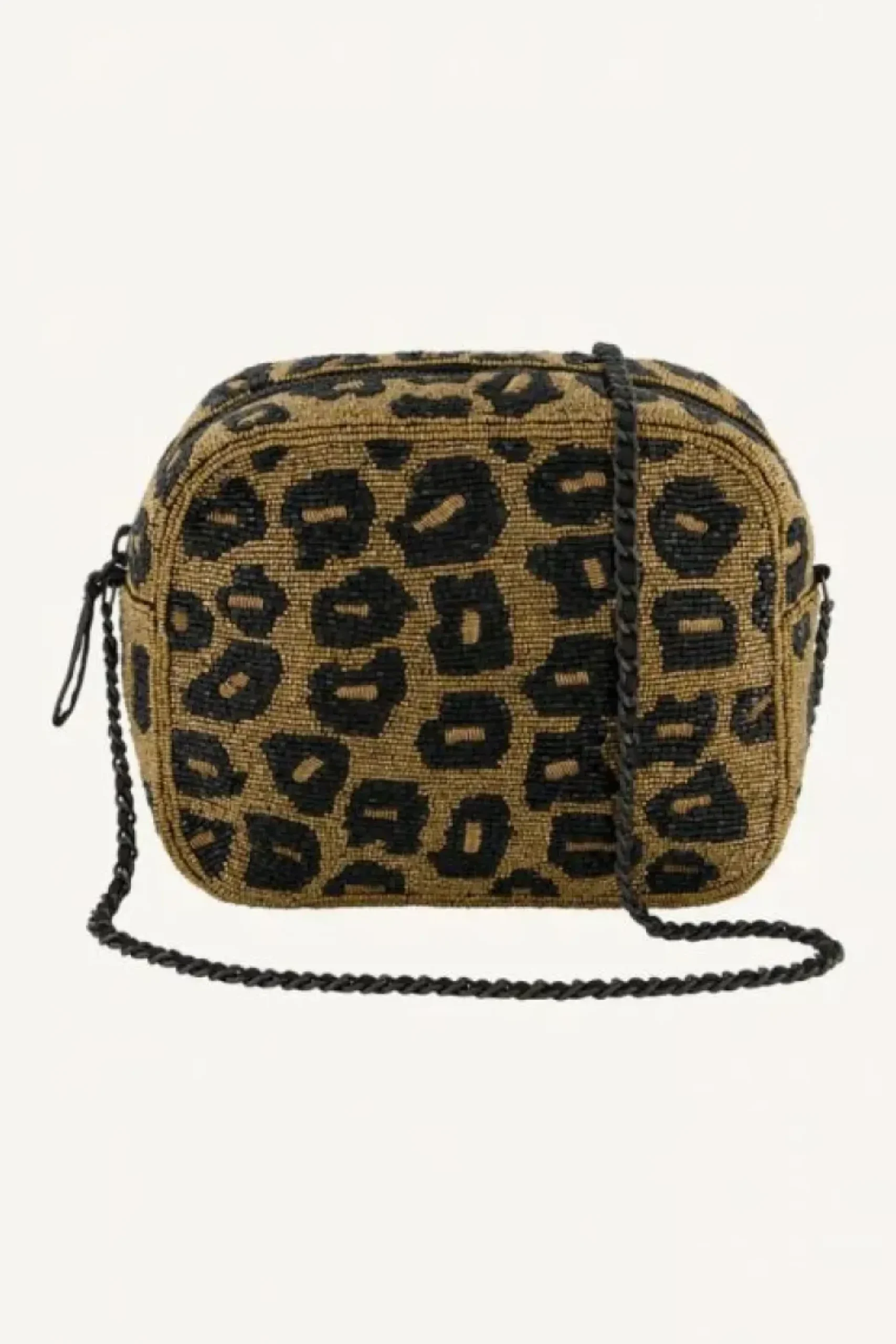 De kelsey bag is de ultieme combinatie van stijl en praktisch gebruik. De kelsey bag heeft een geschakelde ketting. Dit zorgt ervoor dat je elke outfit op een stoere manier kan combineren. Een leuk detail zijn de all-over kralen met een leopard design. Verder heeft de tas een katoenen kwaliteit aan de binnenkant en kan je de tas sluiten middels een rits. Afmeting b 18 cm x h 14,3 cm.