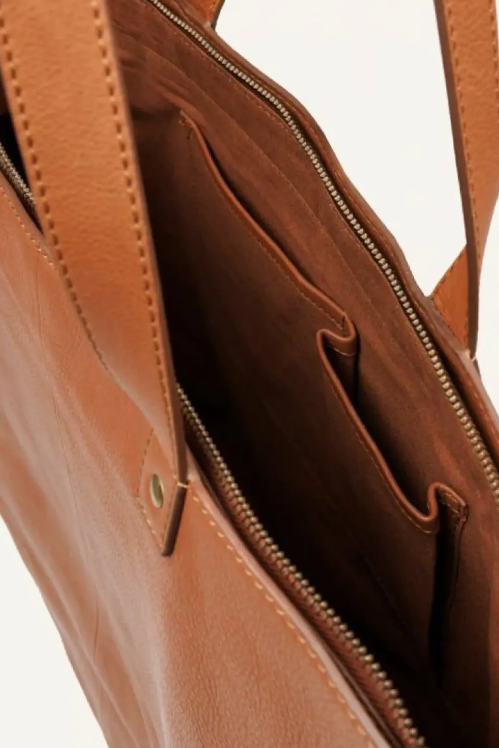 de shopper bag is gemaakt van soepel leder. het is een ideaal handtas formaat waardoor je hem makkelijk meeneemt naar bijvoorbeeld je werk of gebruikt tijdens een dagje winkelen. de tas heeft korte hengels en heeft een vakje aan de buitenzijde. de tas is te openen met een rits en is voorzien van een katoenen binnenvoering. in de tas bevinden zich 3 zakjes, n met ritssluiting en twee open vakjes. handig voor bijvoorbeeld je telefoon. afmetingen b 39 cm x h 37 cm x d 13,5 cm.
