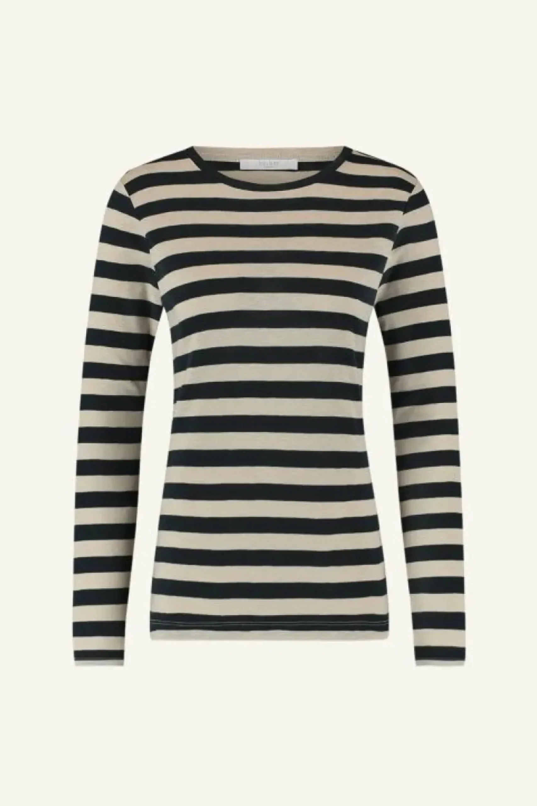 Deze comfy top is gemaakt van 100% organic katoen. De top heeft een aansluitende pasvorm, is voorzien van een gestreept dessin en heeft lange mouwen. Daarnaast heeft de top een ronde haslijn met een smalle boord.