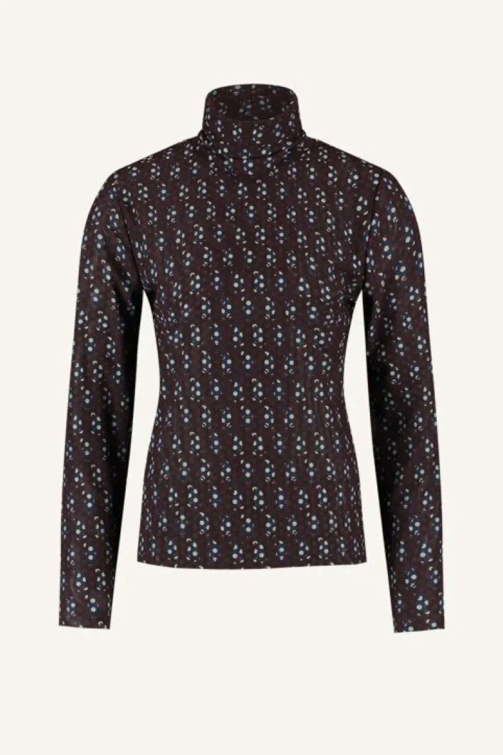 Layer up in style this winter! De mesh paisley top heeft een aansluitende fit, lange mouwen en een hoge opstaande halslijn. Door de licht doorschijnende mesh stof krijgt de top een stijlvolle twist. Verder heeft de top een all-over paisley print voor een elegante uitstraling. Combineer het samen met de benji satin stripe pants voor een sophisticated set.
