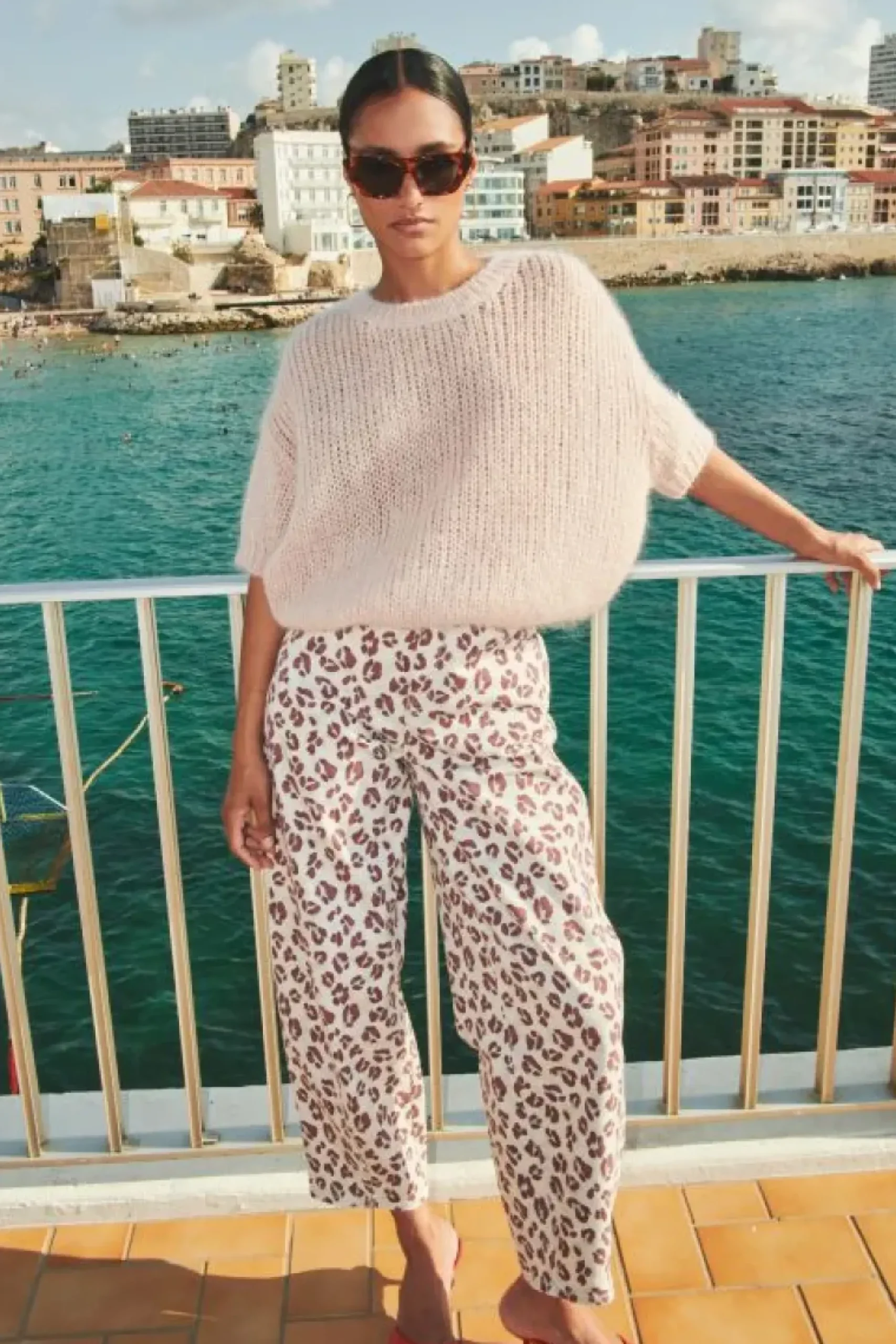 De essential pullover voor dit seizoen! Deze casual trui met ronde halslijn en korte mouwen is perfect voor elke gelegenheid. Deze tijdloze trui voegt comfort en stijl toe aan je garderobe. Combineer de pullover samen met de begum denim pants!